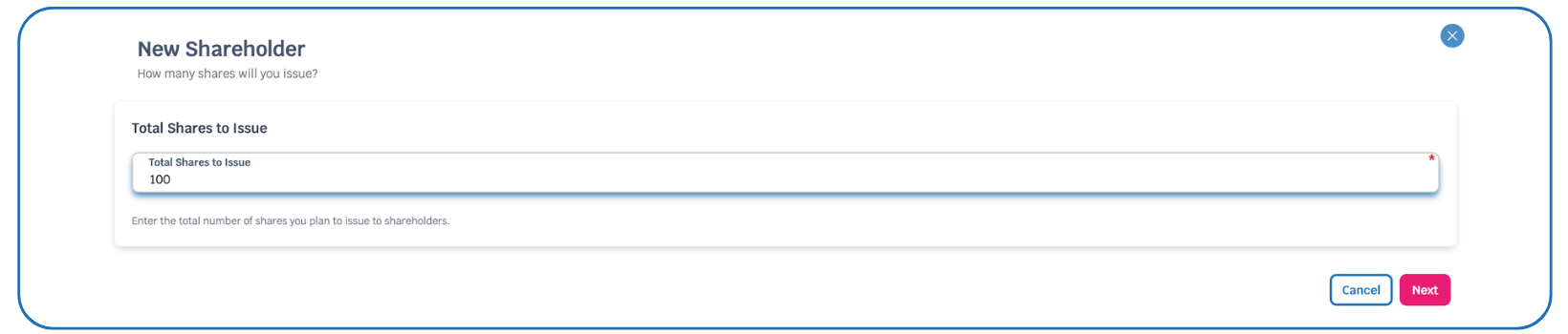 To start the process, the platform needs to understand how many shares will be issued during this workflow. This will serve as a reconciling figure, and the process will not be able to be completed without ALL the shares being allocated.